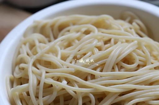 4,煮好的意大利面撈出來,用溫水沖洗一下備用,如果是第二天用,可以蒙上保鮮膜放冰箱裡冷藏保存。