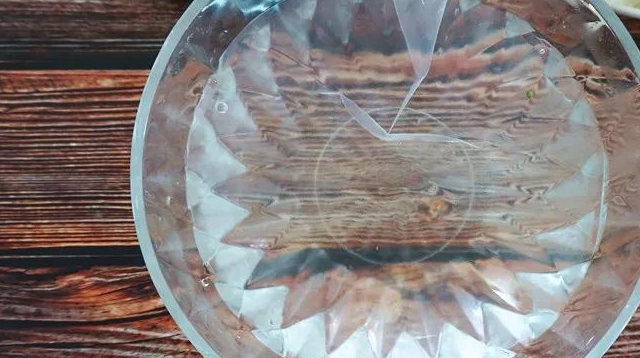 4、準備一大碗溫水(約60℃),手能感覺是溫的就可以瞭,把越南春卷皮泡在溫水裡,能明顯感覺變軟就拿出(大概5秒鐘)。
