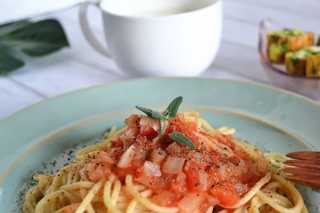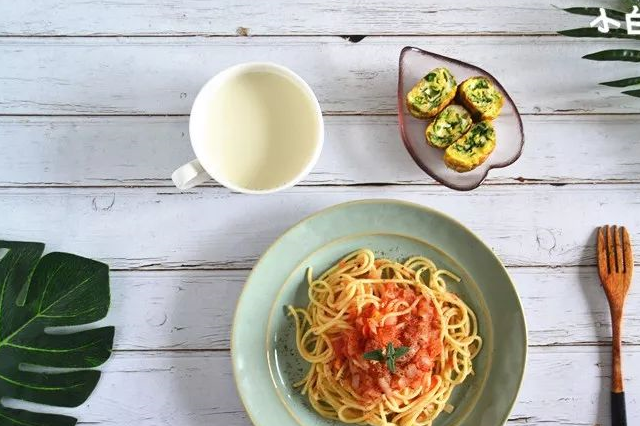 三、番茄意面、菠菜厚蛋燒、純牛奶