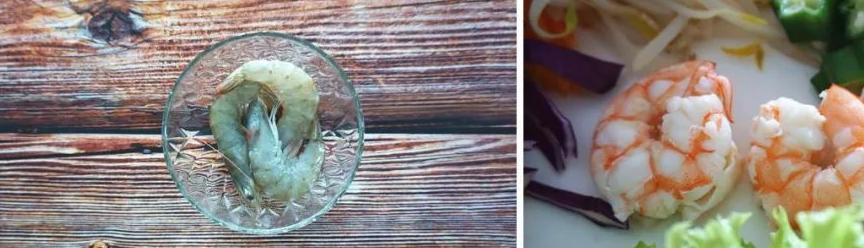 2、大蝦去頭、殼、蝦線,放入沸水中煮兩分鐘撈出。