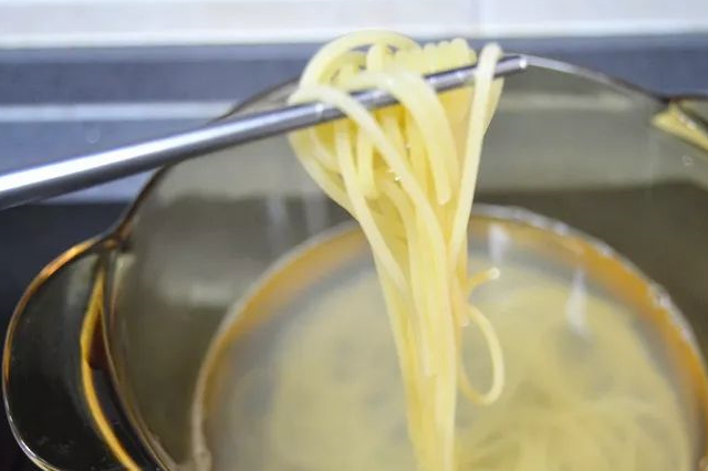 5、意面放沸水裡煮熟,這種面不容易煮熟,需要煮10多分鐘。