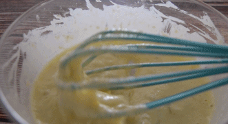 1、香蕉去皮,用勺子搗碎(香蕉泥不用太碎,口感更好。用熟香蕉做更好吃)。加入一個雞蛋,60g牛奶,35g面粉。