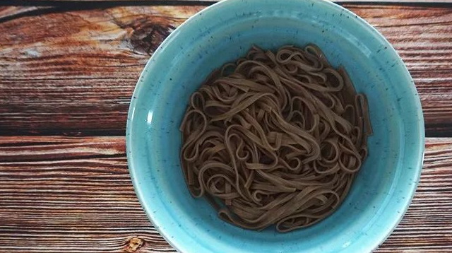 1、蕎麥掛面煮至沒有硬心,撈出放大碗裡備用。