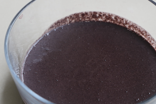 8、蒸鍋內把水燒開,然後把黑米糊放進去,倒扣一個盤子或是蓋耐高溫保鮮膜上去,隔水蒸大約40分鐘左右;