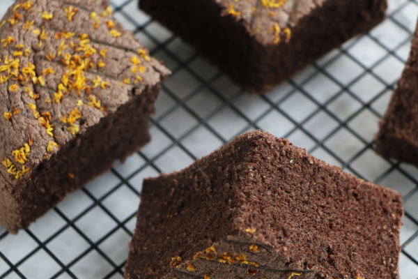 9、出鍋倒扣涼涼,脫模切塊吃就可以的!有濃濃的黑米香味,參雜著淡淡的桂花香,當做早餐真的營養又好吃,比包子饅頭都好多瞭!