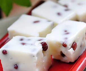食材:豆腐佈丁、紅豆湯、糯米粉、調味奶油奶酪