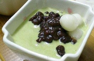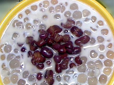 材料:紅豆25克、玉米淀粉50克、椰漿150克、鮮奶250克、砂糖35克