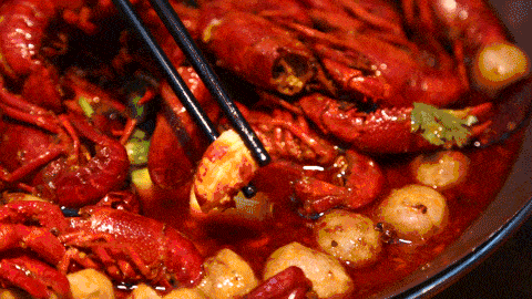 每一隻小龍蝦都浸泡在紅亮的湯汁裡