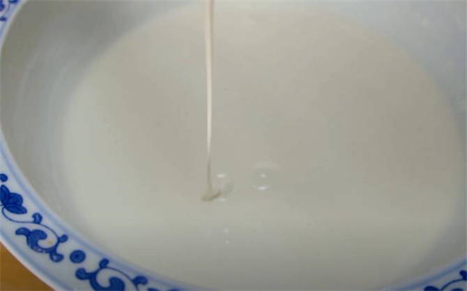 5.然後在盆裡倒入200g的糯米粉,再來50g的玉米淀粉,我又加瞭一些奶粉,這樣更好吃一些,再倒入230g的清水,把它攪勻就可以瞭,把這個面糊一直攪拌,直到攪拌成這樣提起來是細膩的,像酸奶一樣的狀態就可以瞭。