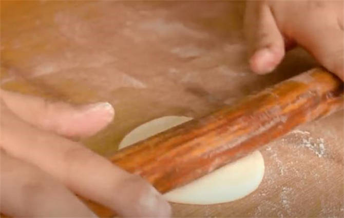 5.把每個面劑稍微的揉幾下,把它揉勻,在掌心團幾下按扁,用搟面杖搟開。