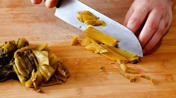 1、 酸菜清洗幹凈,切成小段;