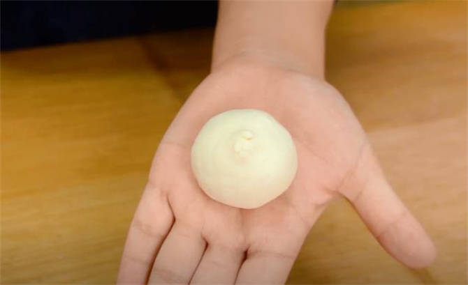 3.我們把每個面劑揉勻,最後在手裡團一下,團成這樣的小圓球就可以瞭。