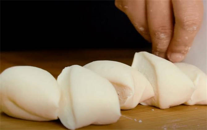 2.直接把面團整理成長筒的形狀,整理好之後就可以下劑子瞭。
