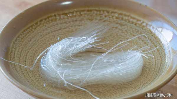 1、龍口粉絲1個,加溫水泡軟。不要開水,不然就泡熟瞭,再烹飪就爛瞭,口感就不好吃。泡這個粉絲用溫水和冷水就可以。