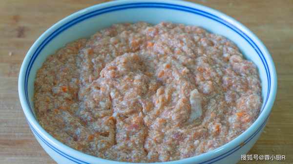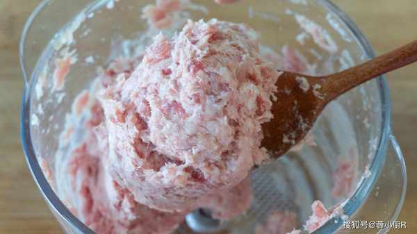 繼續攪拌均勻,我們的肉餡兒部分就調好瞭。