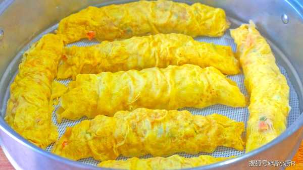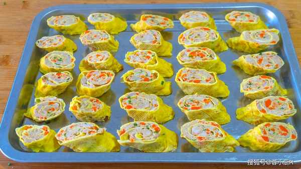 12、接著從一頭卷起來就行瞭,刷瞭蛋液能更好地黏合在一起,全部做好就可以蒸瞭,蒸鍋上記得放一層不粘的墊子,或者是刷點油防粘,擺放的時候每一個之間留點空隙,不要全部挨在一起。