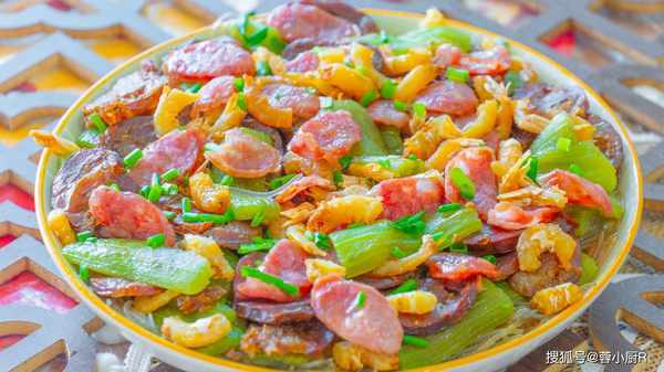 4、香腸2兩根切片,切好後先放一旁。甜的和咸的我各準備瞭一根,看個人口味。有的是用的廣式甜腸,也有人用我們南方的臘腸,所以我就一樣用瞭一根。