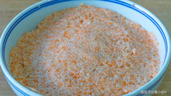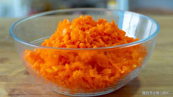 4、再把胡蘿卜也絞一下,5秒就夠瞭,帶點顆粒感更好吃,接著倒出來先放一旁。