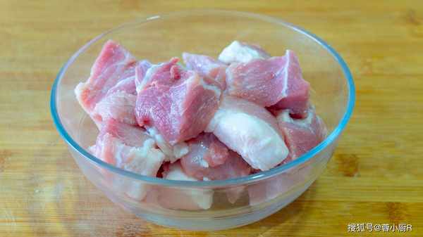 1、先準備1斤豬肉,我用的是前腿肉,去皮後切塊兒。
