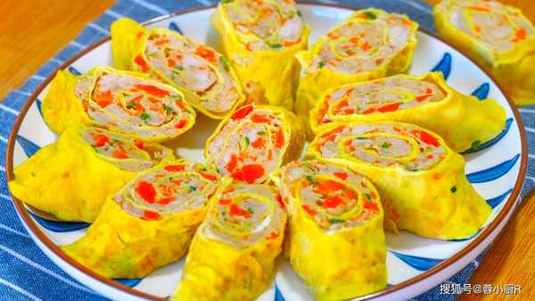 你看,完全都不會散開,一層一層的,非常漂亮,我們的豬肉蛋卷就做好瞭。用來燉菜做湯或者直接吃,都非常的香。