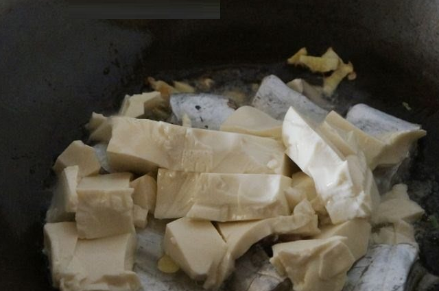豆腐兩塊,切成小方塊,帶魚切段,加適量佐料燉熟。這兩種食材都是比較常見的,帶魚屬於海魚含有豐富的維生素d,維生素d可以促進身體對鈣質的吸收,而豆腐中又含有豐富的鈣質和其他的一些微量元素,而且還含有優質蛋白和氨基酸。不僅味道鮮美而且可以減輕肌肉痙攣的癥狀,這裡的帶魚還可以換成其他的一些海魚。