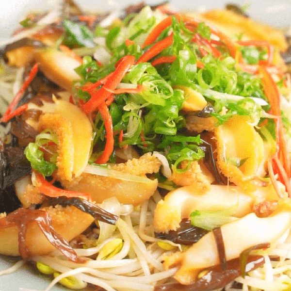 原料:鮮鮑魚、蔥、黃豆芽