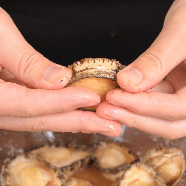 1、鮮鮑魚去殼,拿多多的鹽醃制5分鐘,這樣鮮鮑魚表面的臟東西會變得很好清理,5分鐘後加入適量的溫水沖洗,用手或刷子刷一刷,表面的黑膜等就都掉瞭,鮑魚的口感也會更爽脆。清洗好後把鮑魚一切三,這樣會更好入味和方便入口。