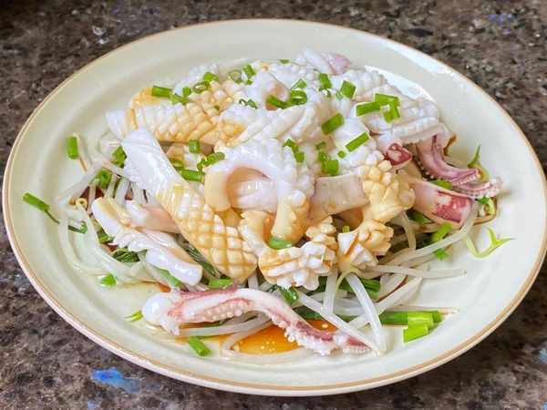 鮮嫩多汁,美味可口的白灼魷魚上桌啦。