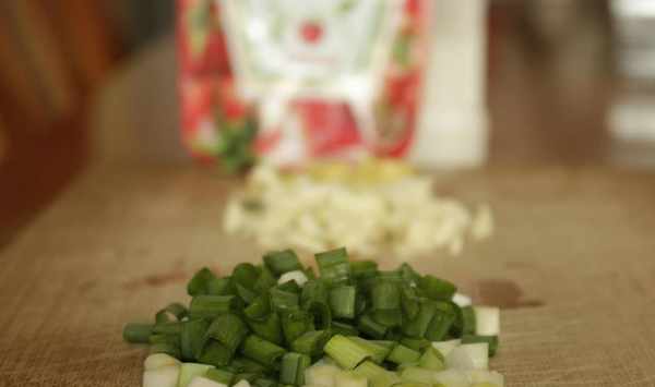 3、在醃制草魚的時候,準備配料:香蔥洗凈切圈,薑切末,大蒜切末;此外,準備好番茄醬、白糖、香醋。