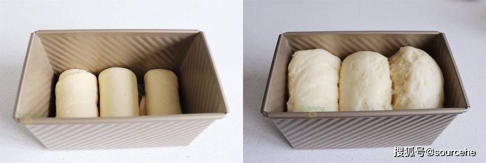【sourcehe溫馨小貼士】1.面團發酵的環境是在溫度38度,濕度85%的條件下最容易發酵,可以放入烤箱,烤箱有發酵功能,選擇發酵,然後放一盆水即可。2.面粉要選擇做面包的高筋面粉,做出來的吐司蓬松香軟,很好吃哦。3.每個烤箱不同,吐司模具大小不同,烤熟的時間和溫度略有差異。4.吐司一次吃不完,可以切片好,用保鮮袋裝好,不要回潮哦。