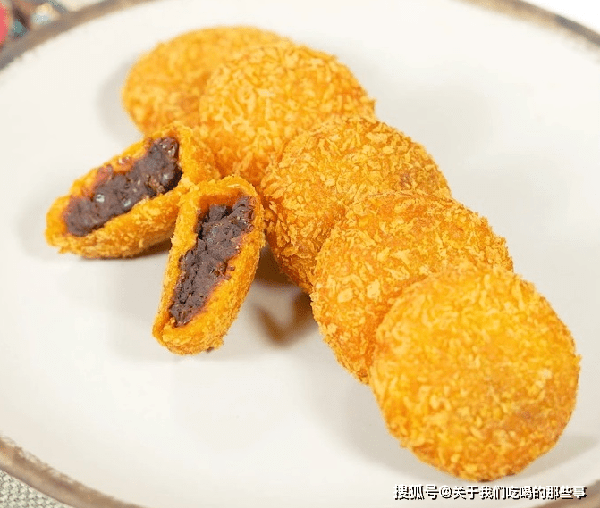 準備紅豆餡、南瓜泥、糯米粉、面包糠、白糖、食用油。