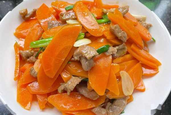 做法:1、胡蘿卜洗凈,切成片;豬肉切成片;