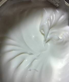 打到濕性差不多8分的狀態,得到非常細膩的蛋白霜。