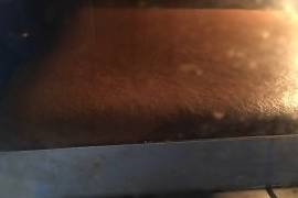 蛋糕出爐後從30CM高處將烤盤摔在桌面震出底部熱氣。