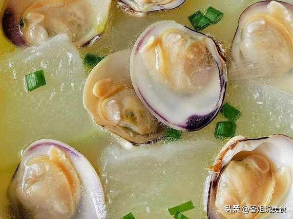 4、冬瓜煮2分鐘之後,放入白貝繼續煮3分鐘。煮好瞭之後,加入食鹽調味,撒上蔥花就可以出鍋開吃瞭。