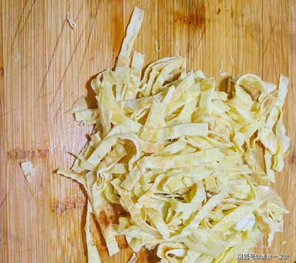 5把做好的雞蛋皮,放在案板上面,切成絲!