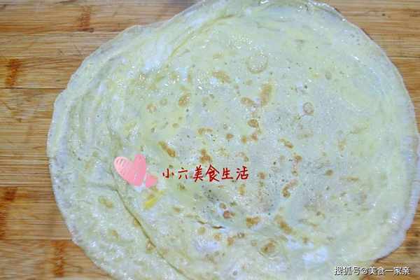 像烙餅一樣,先一面烙好以後,把雞蛋皮翻過來,再烙另一面!