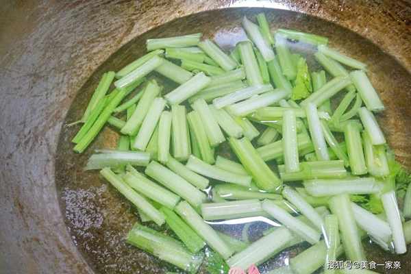6鍋內加入水燒開,把芹菜放進去燙一下,立刻撈出,用涼水過涼!