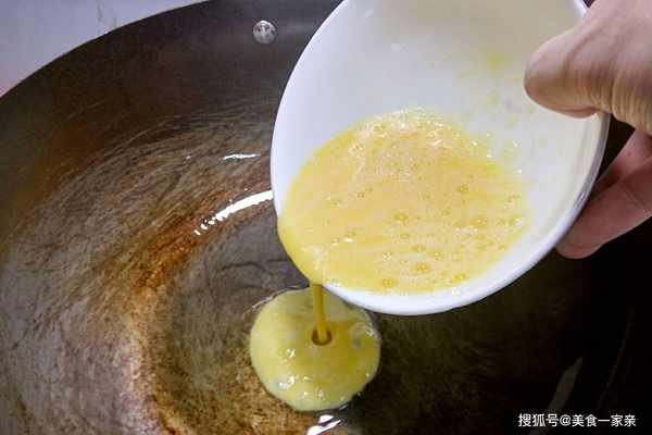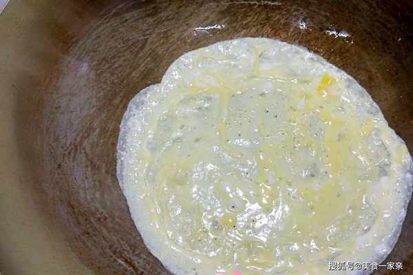 4鍋放入少許底油,把雞蛋倒在鍋中間,然後慢慢搖晃幾圈,做成圓形!