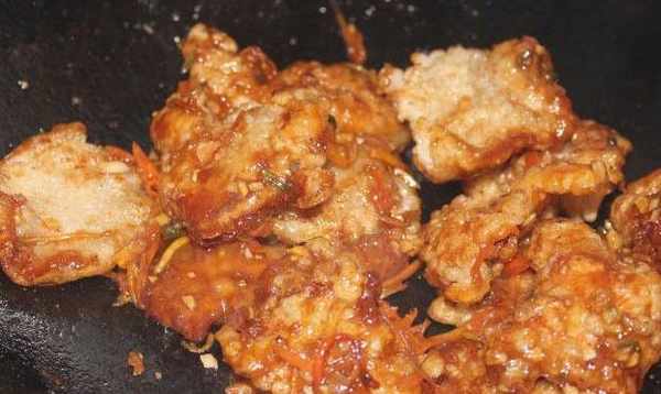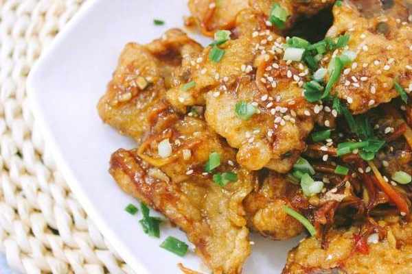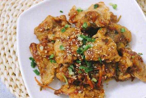 美味的鍋包肉就完成瞭!裝盤,開吃