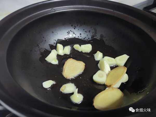 3.生薑,蒜瓣處理幹凈,洗凈之後的蒜切片,生薑也切成片,放在碗粥鍋裡面。今天我們用的是砂鍋,砂鍋有很好的導熱作用。砂鍋放入油,然後把備好的生薑跟蒜瓣放入鍋裡面;