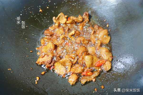 4,加少許老抽、1勺生抽、花椒粉、蒜末、紅辣椒,小火炒出香味。