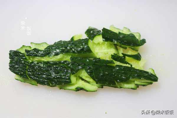 1,黃瓜洗凈,用菜刀拍裂,然後斜刀切塊。這樣切黃瓜特別快,而且炒的時候更好入味。