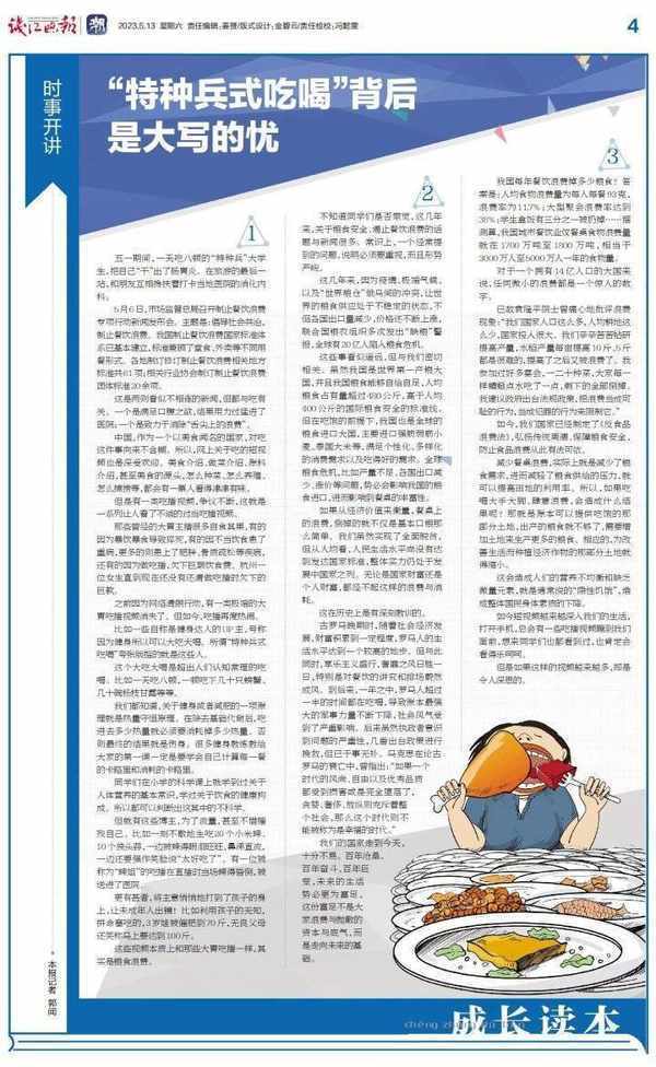 這是兩則看似不相連的新聞,但都與吃有關。一個是滿足口腹之欲,結果用力過猛進瞭醫院;一個是再次致力於消除“舌尖上的浪費”。