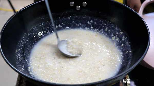 1.鍋裡面添入一碗清水,水燒開後倒入50克燕麥片,用勺子不停地攪拌,熬至面糊呈粘稠狀就可以瞭。