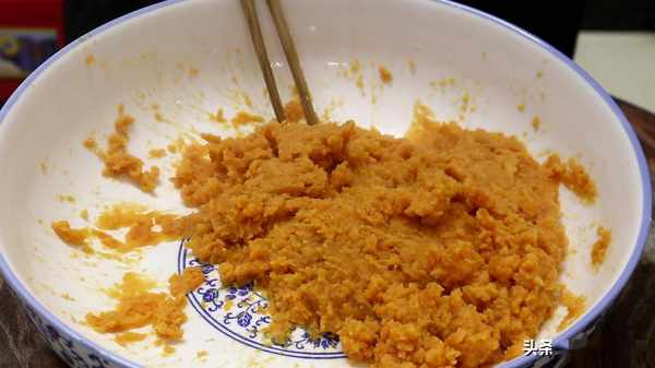 2.然後倒入一個盆中放涼,加入 酵母粉3克,白糖20克,加入面粉100克,先用筷子攪成面絮,再加入少許植物油,用手揉成軟一點的面團,蓋上保鮮膜,放在一邊,醒發1個小時。