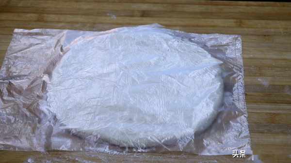 3.把面團醒發以後,在案板上撒上適量的幹面粉,再取出醒好的面團,用手揉搓幾下,排出裡面的氣體,蓋上保鮮膜,二次醒發5分鐘。