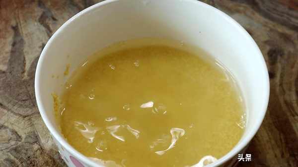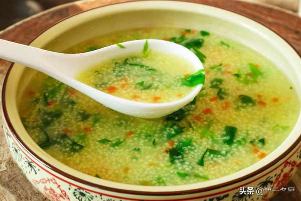1.碗裡放入兩勺小米,用清水淘洗幹凈,再加入適量的清水浸泡10分鐘,這樣可以使小米吸足水分,口感更好。