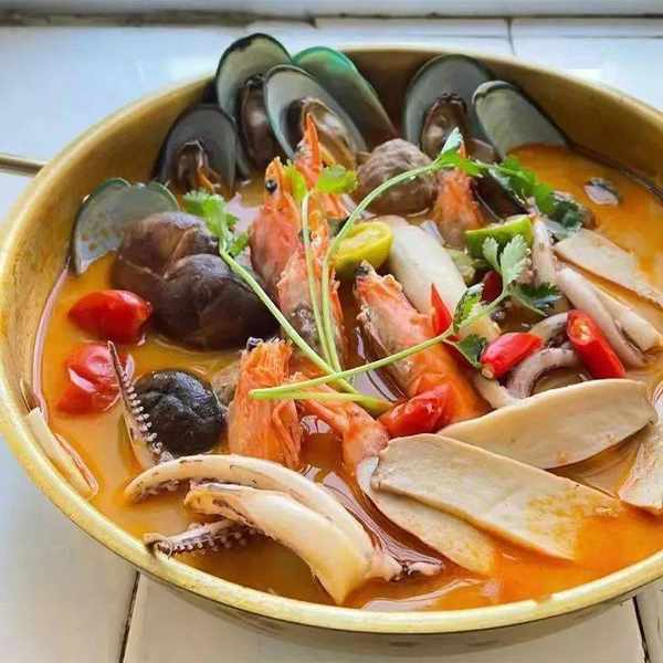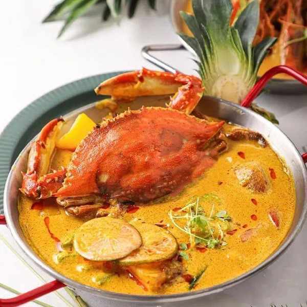 熱菜檔口也是藏龍臥虎,冬陰功燴海鮮、印度咖喱蟹、紅甜椒香草烤春雞、南美元寶大蝦...超地道美味,每天輪番上陣,量足足的!