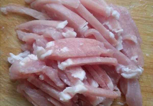 步驟二、豬肉切絲